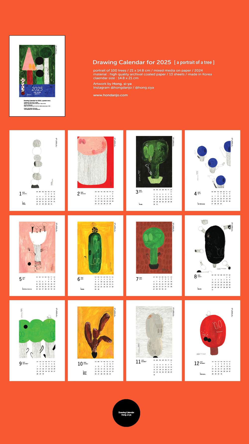 2025년 달력은 100일 드로잉 프로젝트 『나무 초상화』 100점 중 13점의 나무 드로잉 작품을 담았습니다.