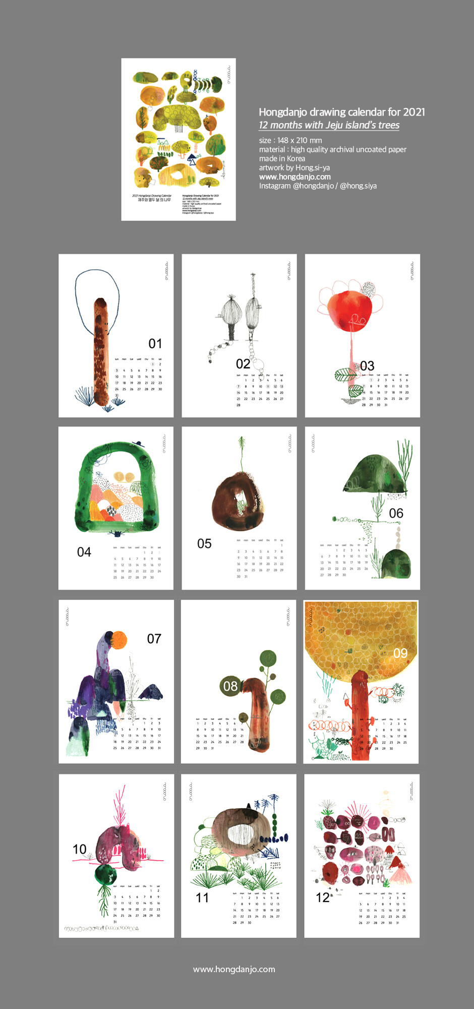 2021년 드로잉 달력 #제주와 열두 달의 나무